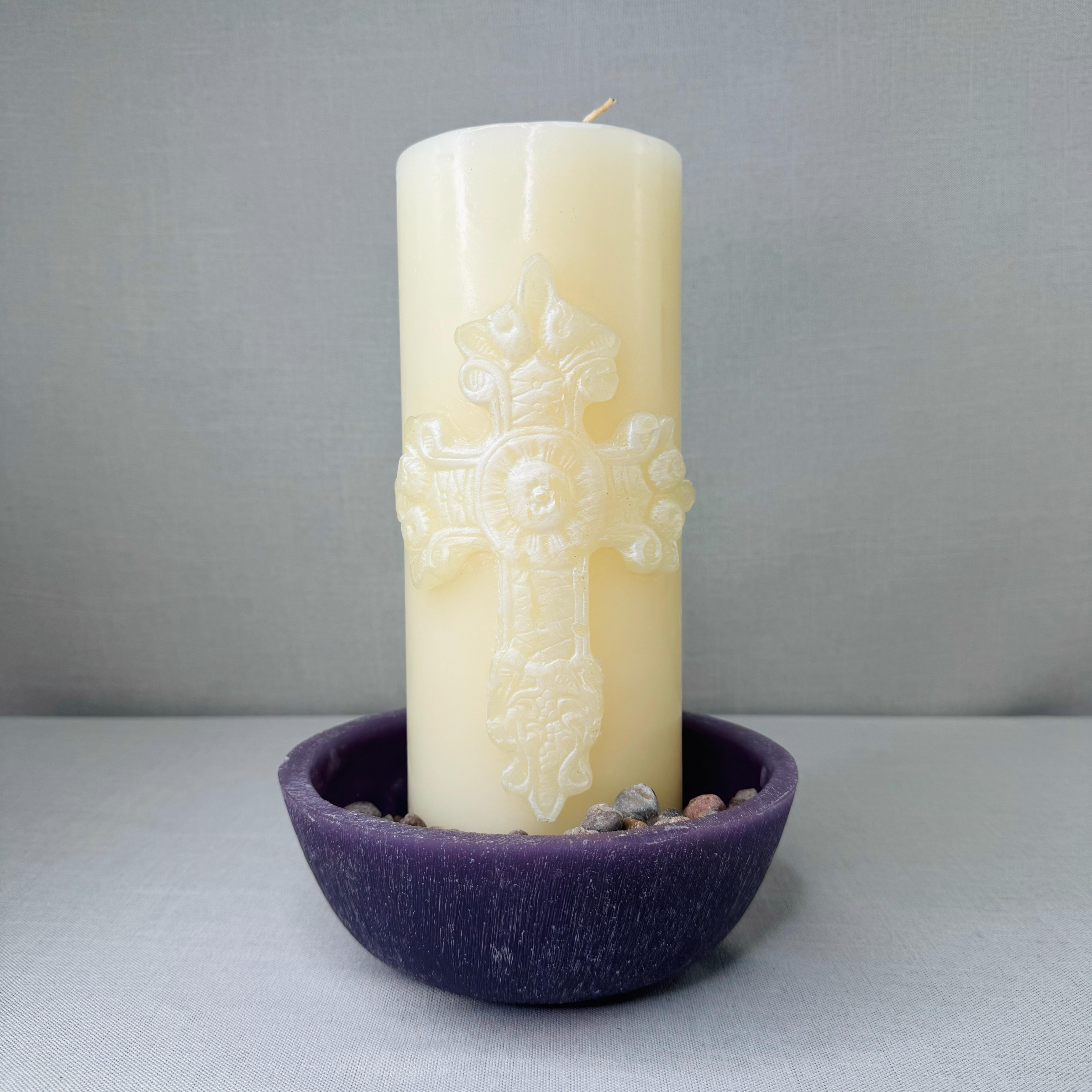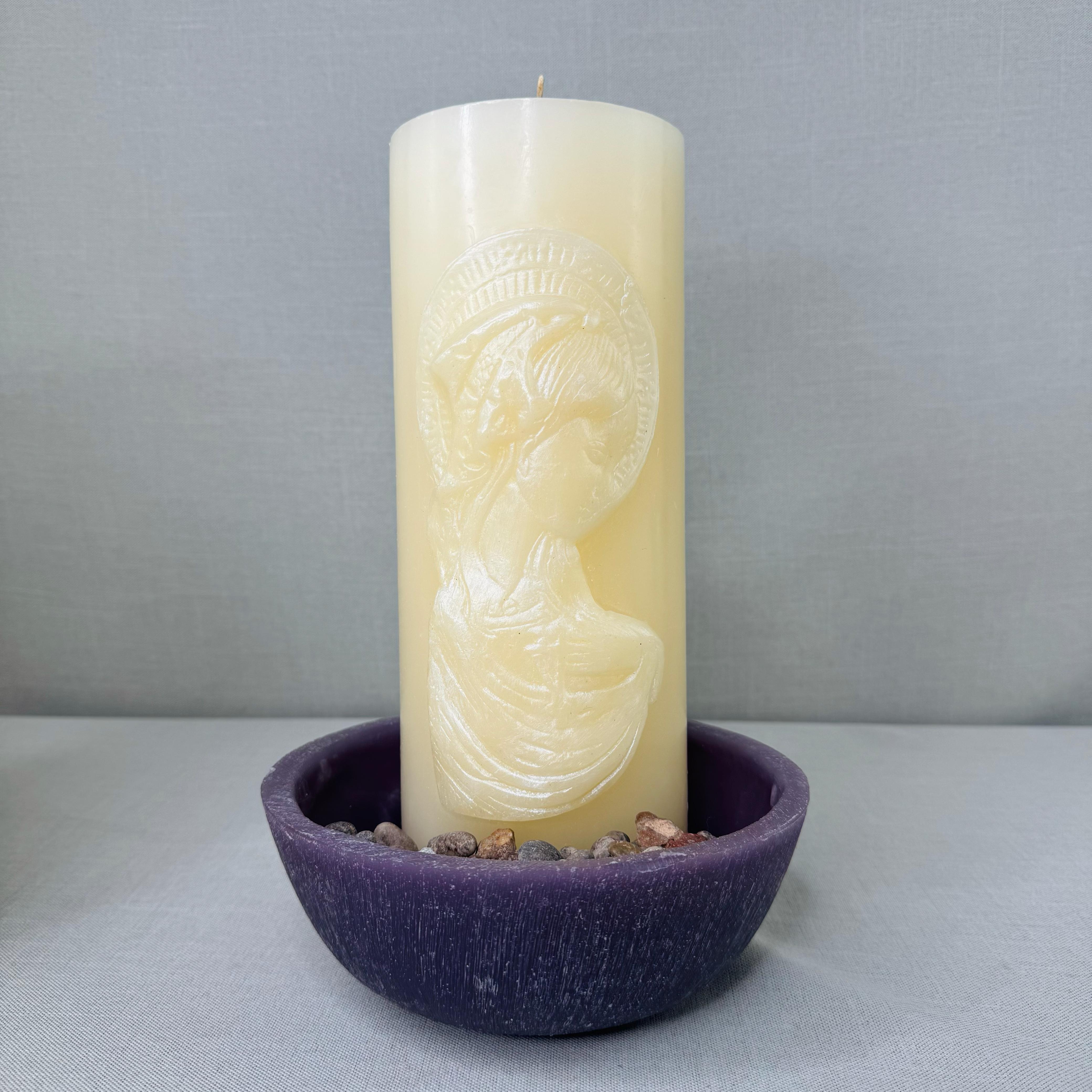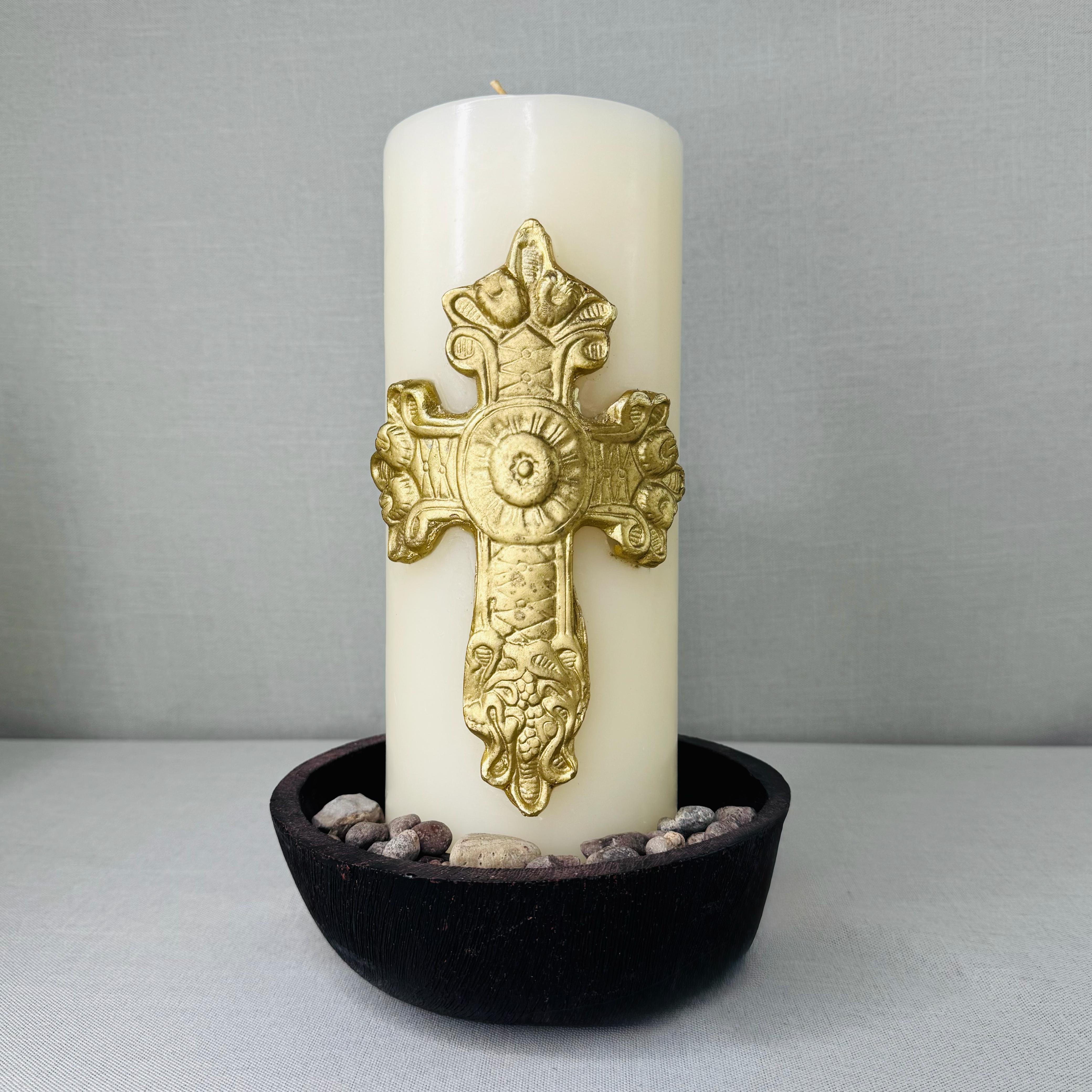 Hay para escoger cirio de Virgen abrazando su manto Dorada o Marfil y Cirio de Cruz color Marfil o Dorada