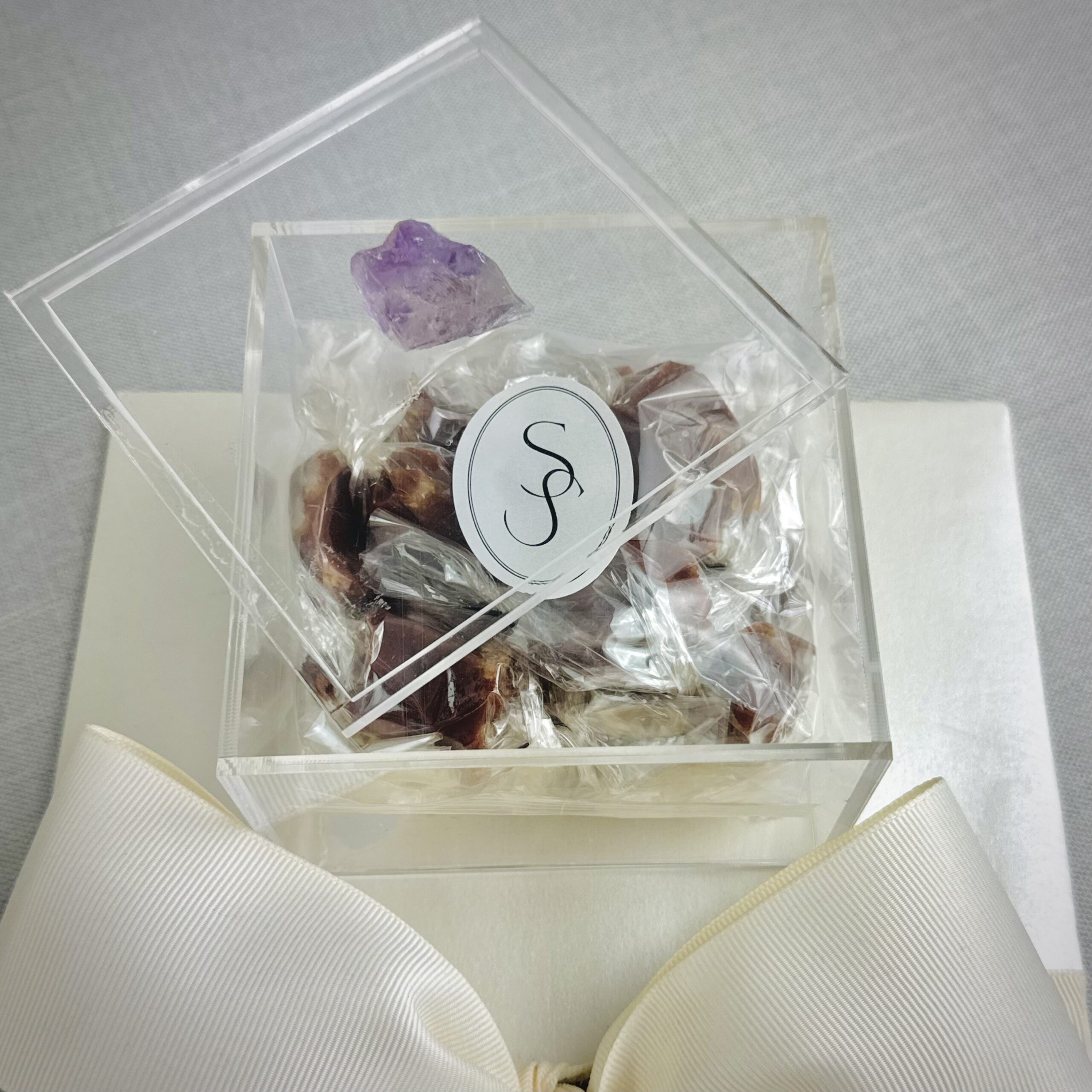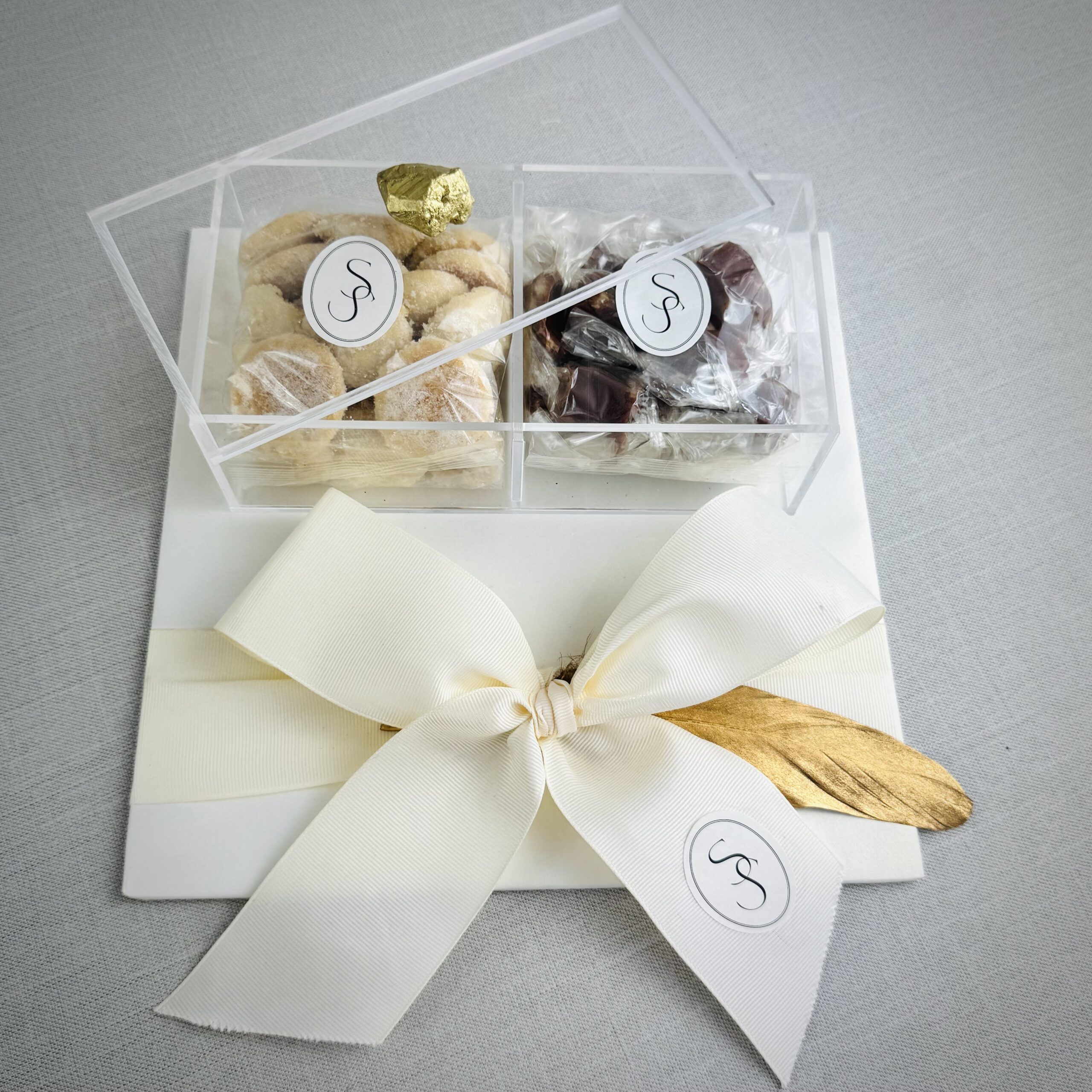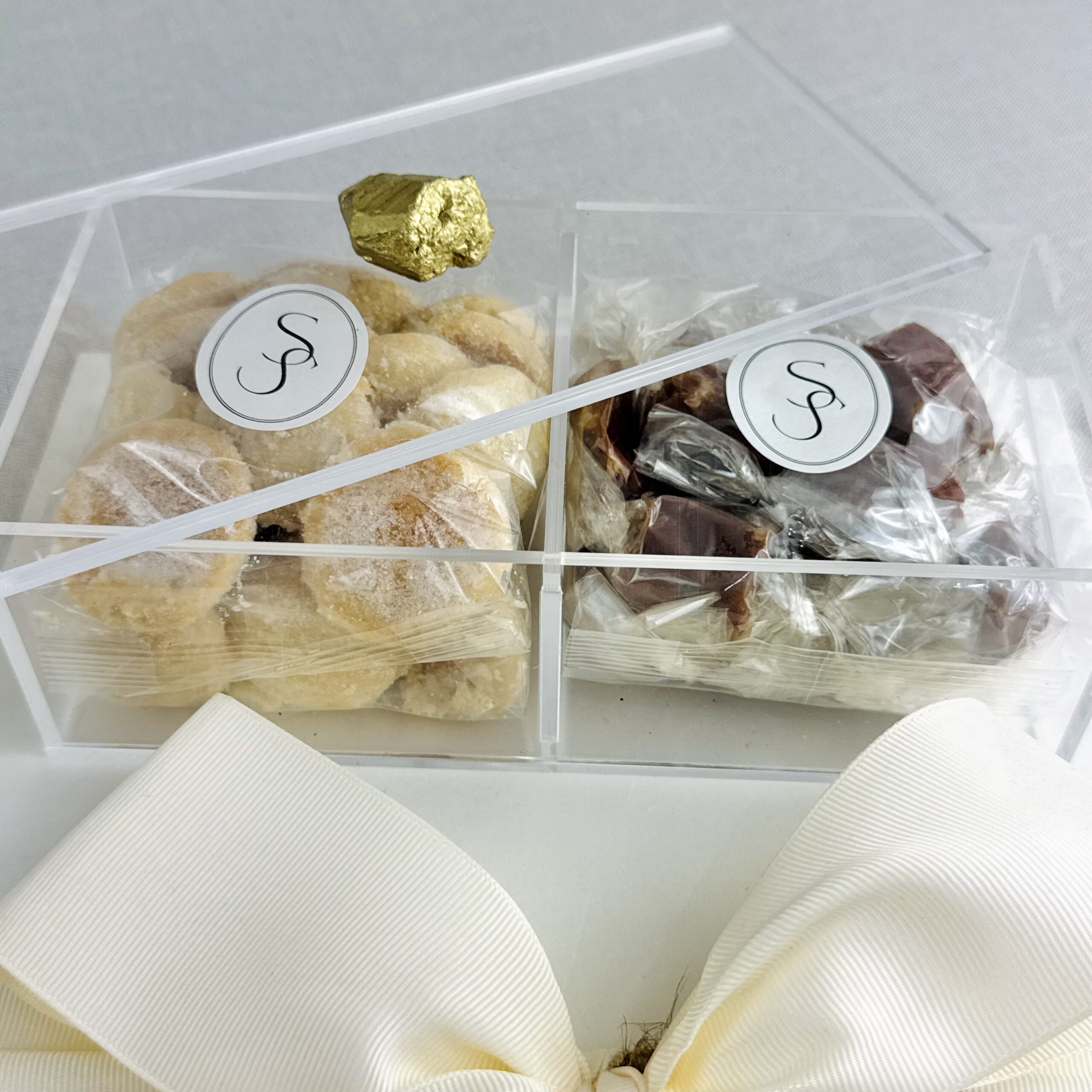 Presentación: Caja de acrílico o Caja doble (Polvorones y Chiclosos).
