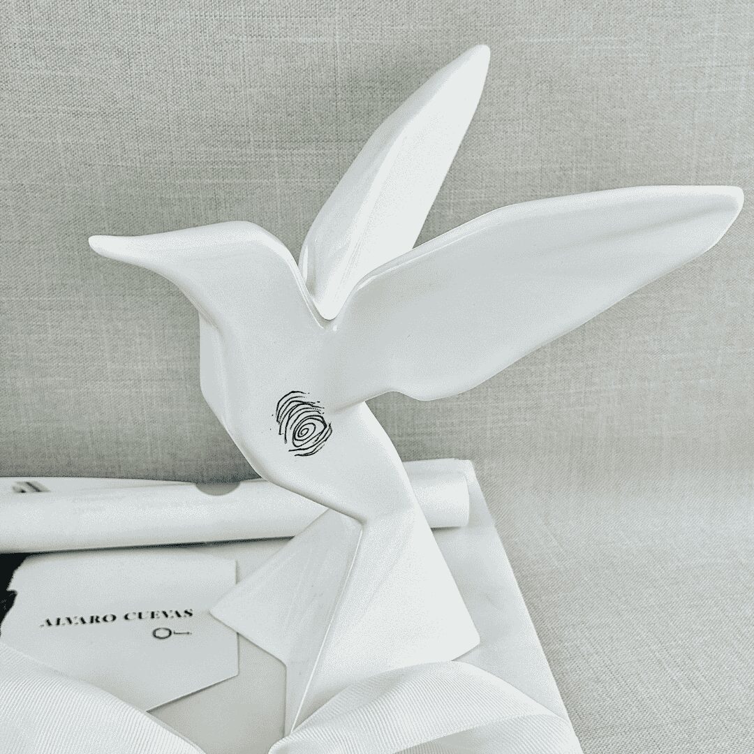 La pieza Colibrí de la colección “Papiroflexia” del reconocido artista Álvaro Cuevas es una obra única que captura la esencia de la magia a través de la cerámica. El Colibrí, en particular, es conocido como ‘¡La Huella de Magia!’, representando un toque de encantamiento y belleza.