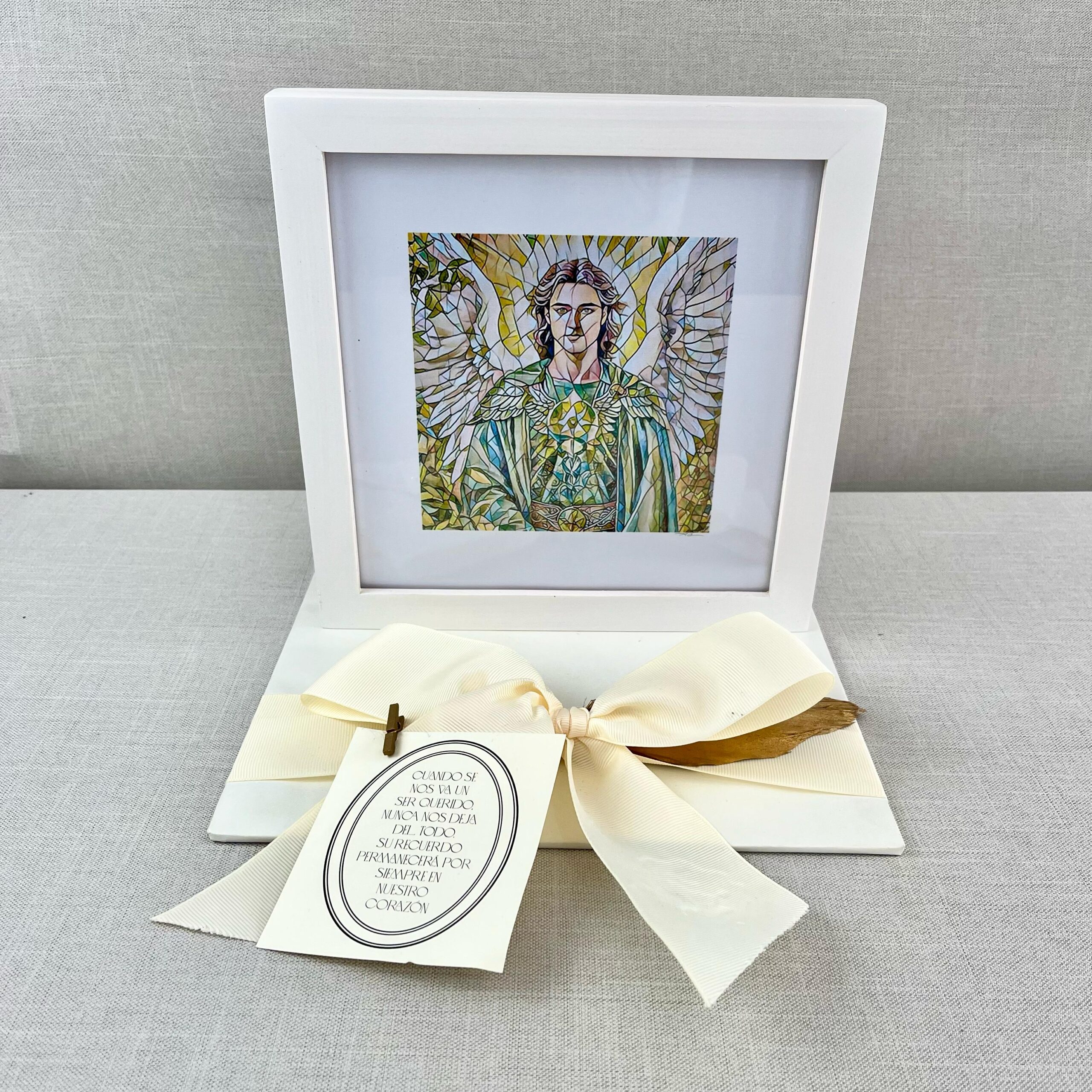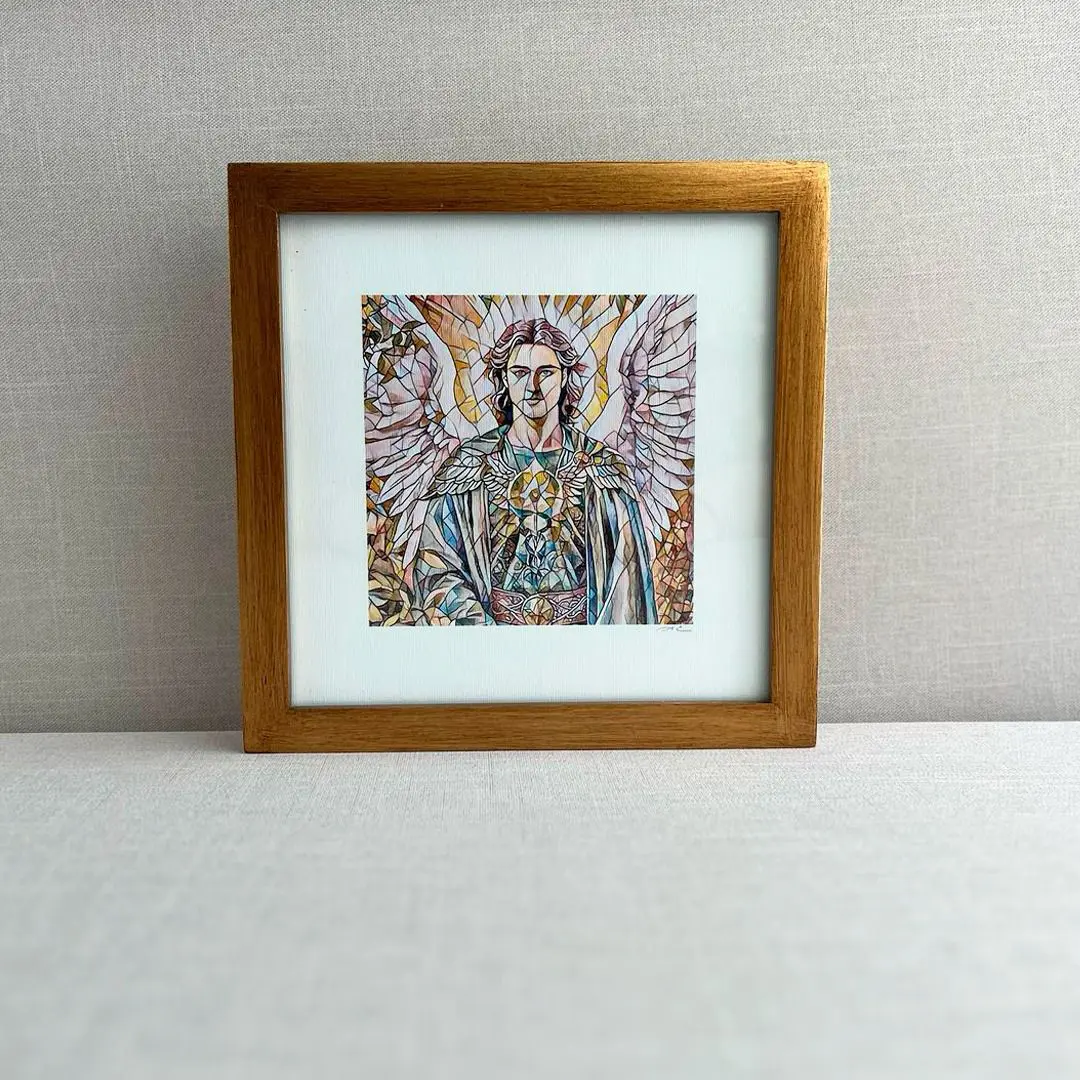 Cuadro de San Rafael diseñado por Antonia Cantú, una obra que transmite protección, sanación y guía espiritual. Con trazos delicados y simbolismo profundo.