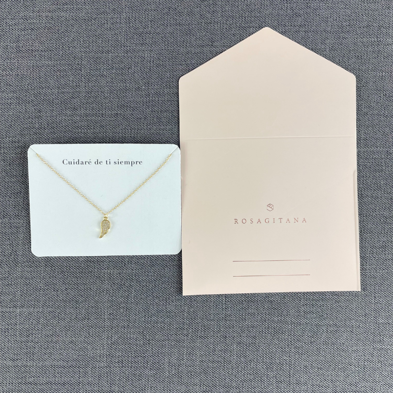 Este collar con ala adornada con zirconias representa protección, libertad.
