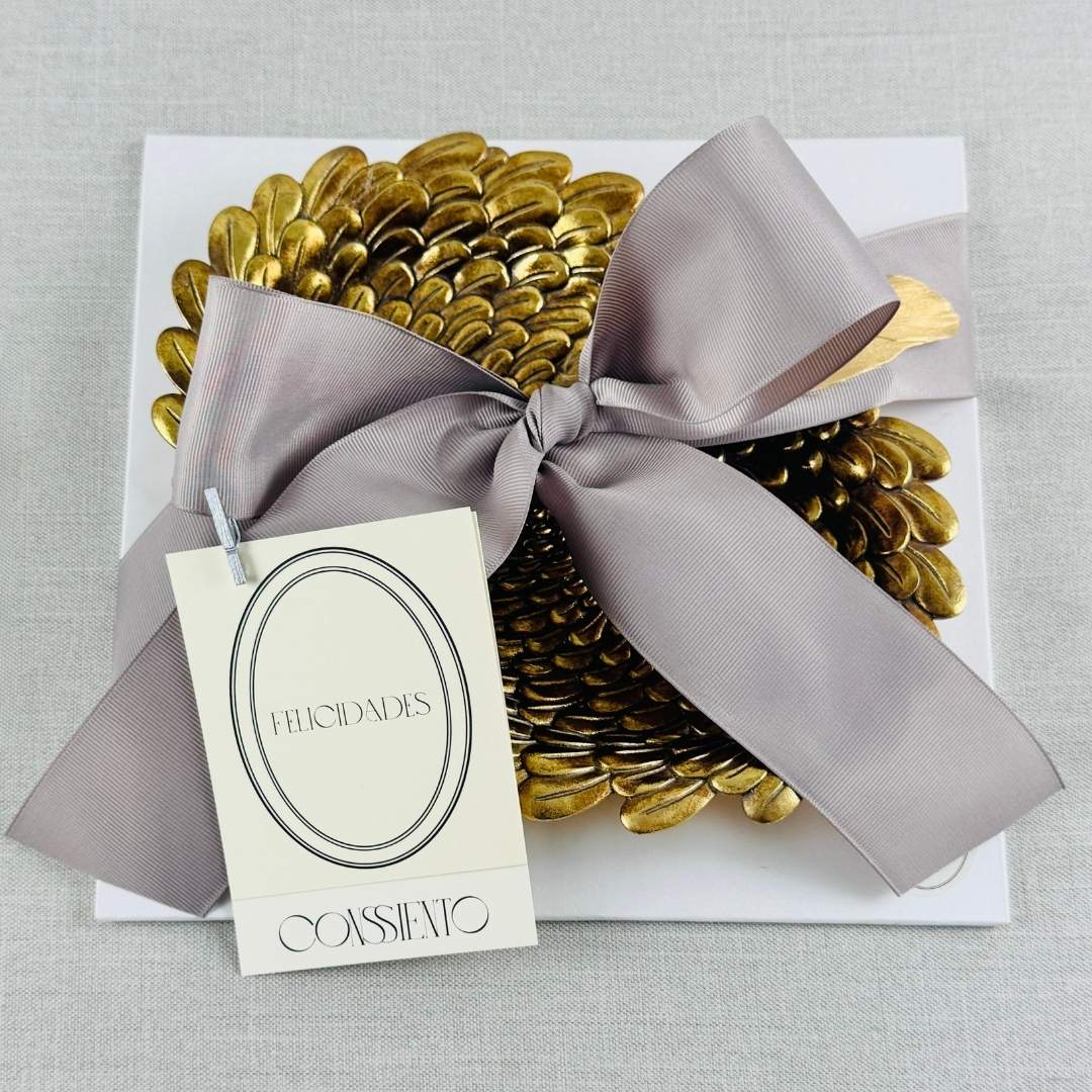 Plato de plumas de ángel, el color esta sujeto a disponibilidad (Dorado o Plateado).
