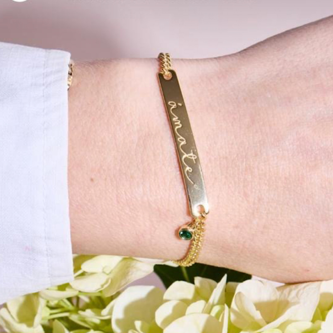 La Pulsera Ámate es una joya elegante y significativa de 14 K, perfecta para regalar a un ser querido en cualquier ocasión especial.